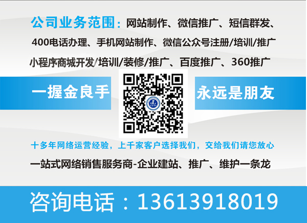 最新公告: 網(wǎng)站建設|百度推廣|400免費電話|手機網(wǎng)站|短信群發(fā)|微信平臺|谷歌推廣|企業(yè)APP定制開發(fā)|淘寶店鋪裝修設計,電話:13613918019 0391-2917698